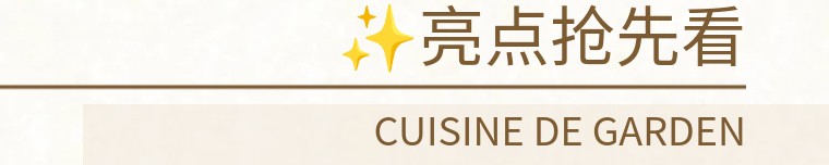 夏风拂过城堡塔尖,阳光在花园里跳跃。在这个盛夏时节,花园餐厅全新推出多款新品菜肴!