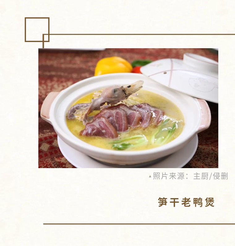 小火慢炖数小时,老鸭的鲜美与笋干的清香完美交融,汤汁浓郁醇厚,每一口都饱含着食材的精华。鸭肉炖得软烂脱骨,入口即化,笋干吸饱了汤汁,口感鲜嫩有嚼劲。