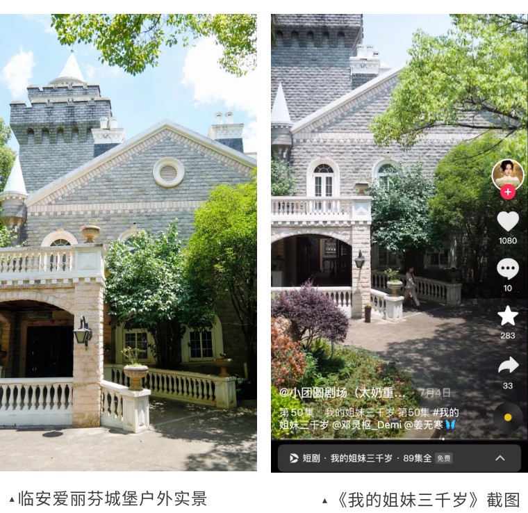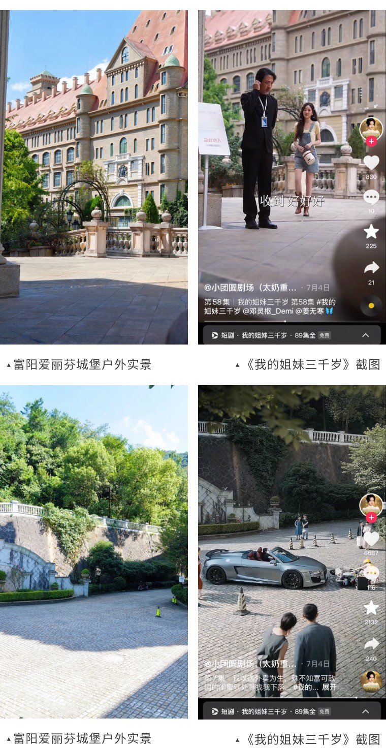 最近,在爱丽芬城堡取景的2部短剧《我的姐妹三千岁》和《他本该光芒万丈》上线,让这座藏在杭州的 “童话秘境” 再次走进大众视野,其中《我的姐妹三千岁》是由精品短剧第一厂牌“听花岛” 打造的。
