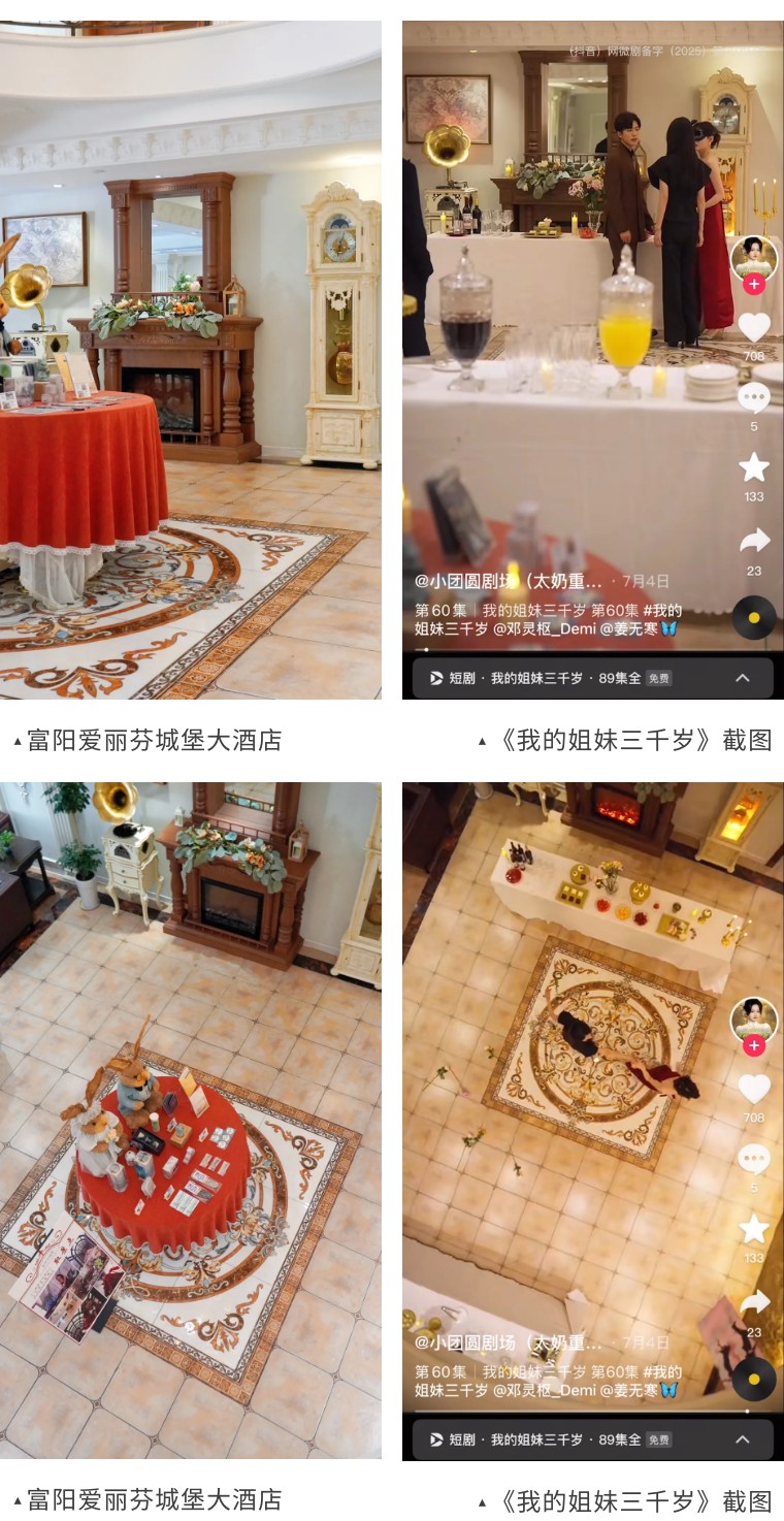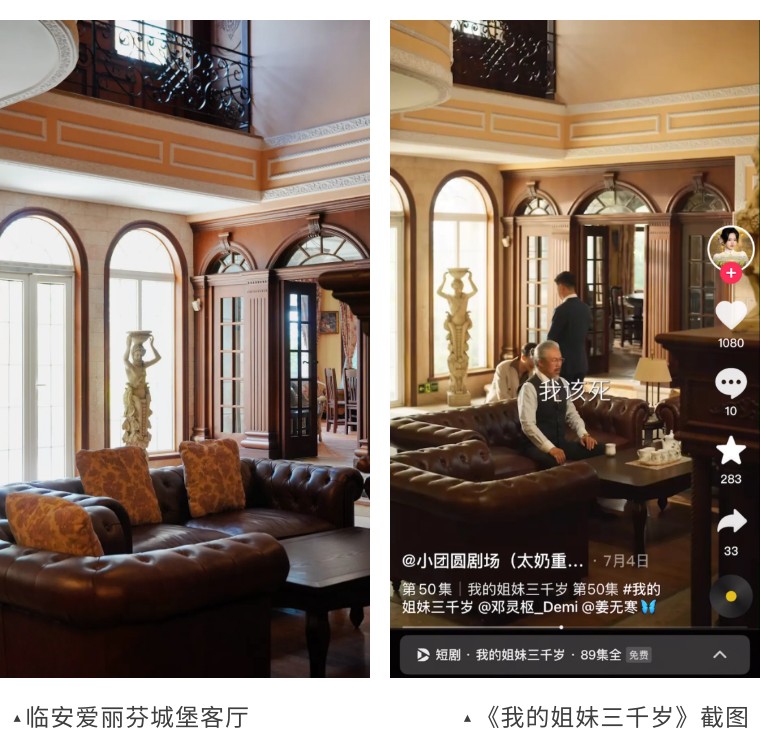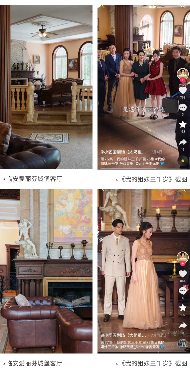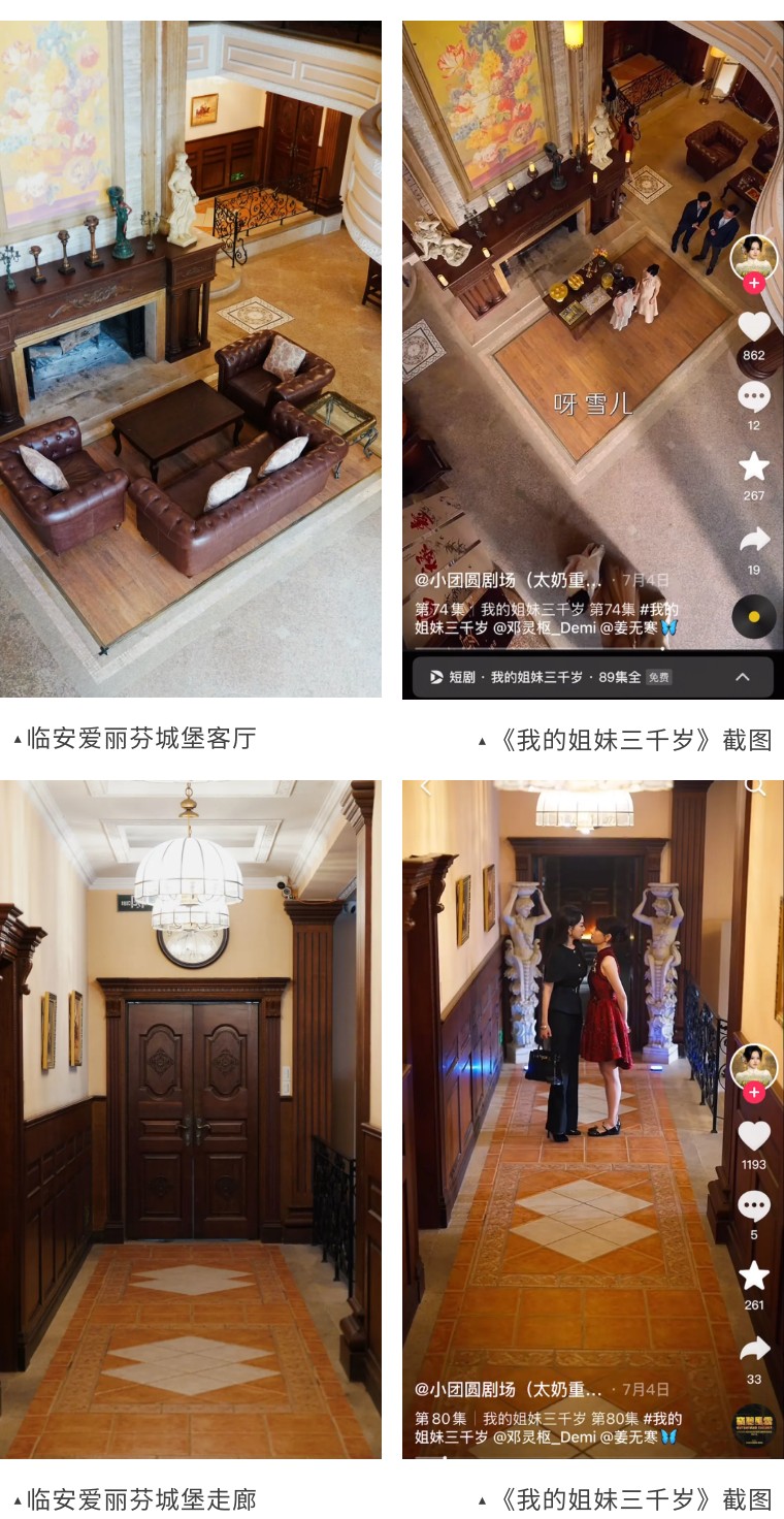 此外,短剧《我的姐妹三千岁》还在临安爱丽芬城堡民宿进行取景拍摄,成为了剧中坐拥千亿资产的霸总——“杨老”的居所。