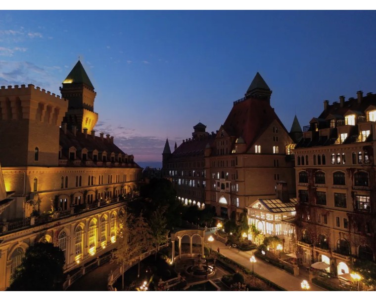 位于城堡核心区域,是彰显“复古轻奢”格调的高品质住宿选择。酒店建筑融入城堡整体欧式风格,营造出典雅精致的居住氛围,适合追求居住品质与仪式感的群体。
