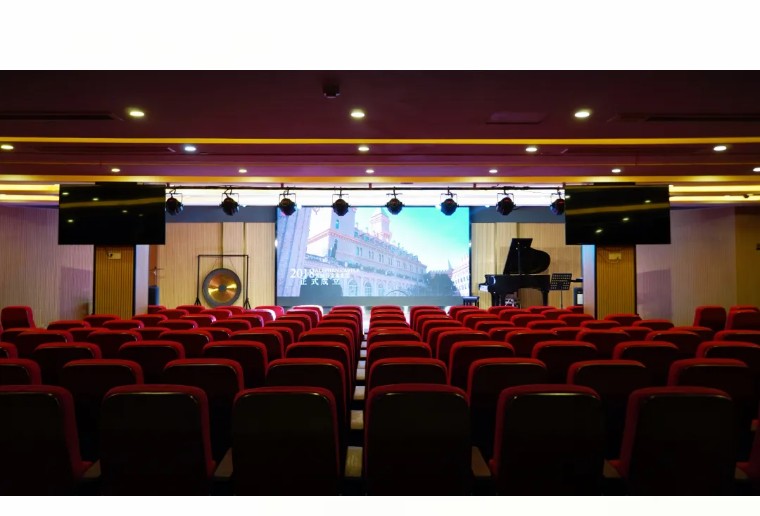 面积约300㎡,可容纳200余人,配备高清LED屏与专业音响设备,舞台空间充足,灯光架设点位齐全,座椅也选用了剧院级的,观看体验十分不错。