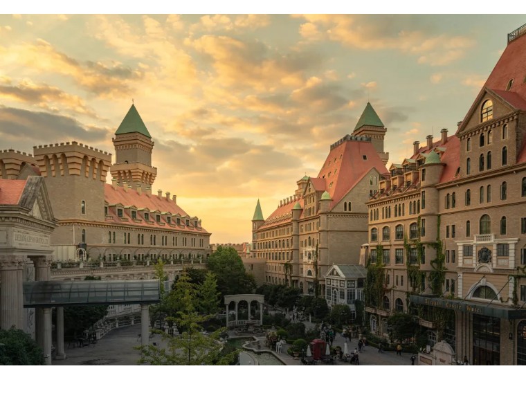 位于城堡核心区域,是彰显“复古轻奢”格调的高品质住宿选择。酒店建筑融入城堡整体欧式风格,营造出典雅精致的居住氛围,适合追求居住品质与仪式感的群体。
