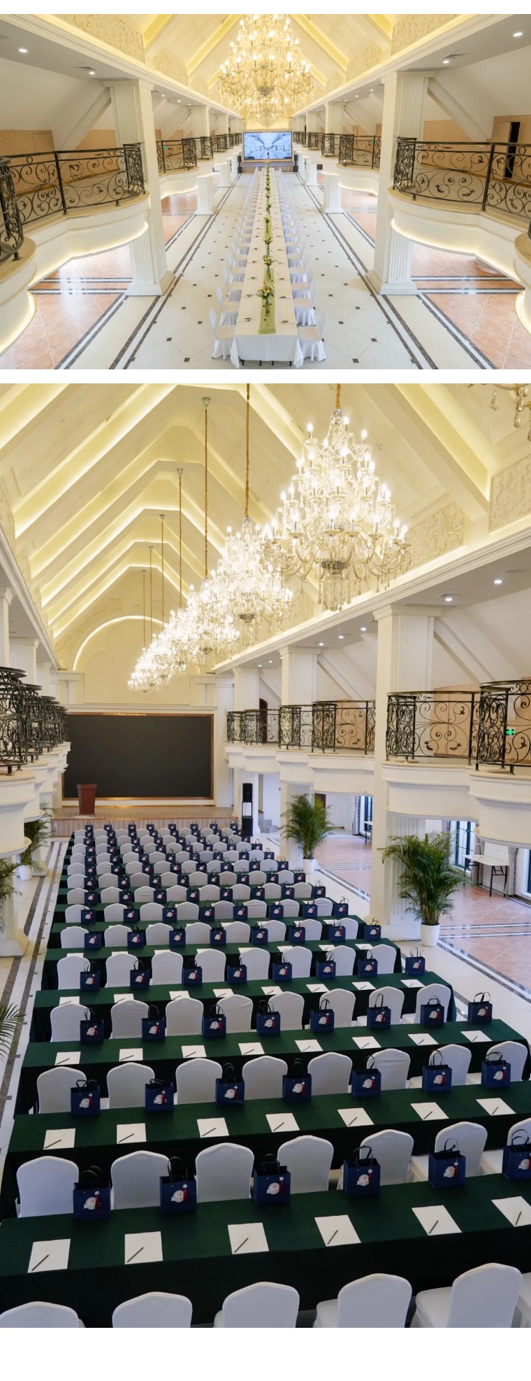 作为城堡内规格较高的综合性场馆,总面积约 700㎡,10米挑高设计搭配璀璨水晶灯,瞬间提升空间仪式感,墙面精致浮雕与欧式线条相呼应,营造出典雅庄重的氛围,兼具“大气视觉”与“实用空间”双重优势。