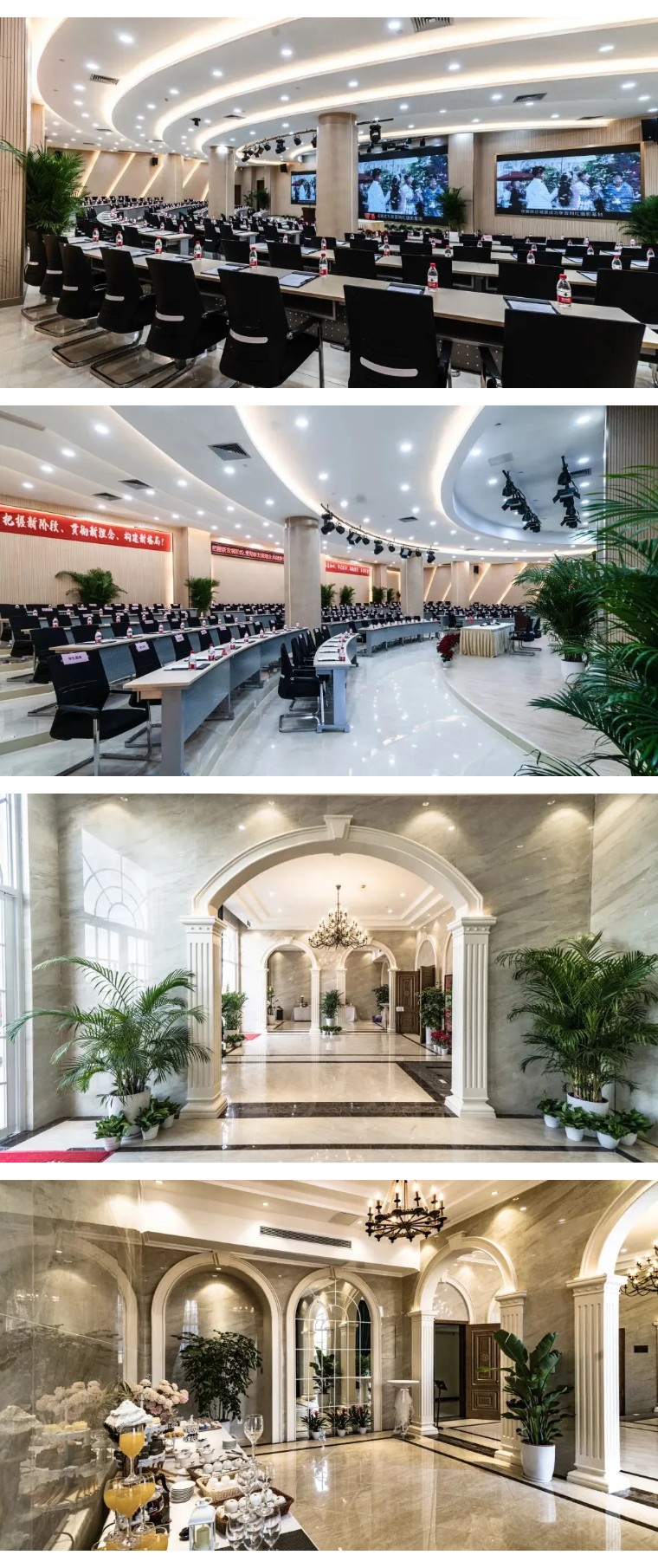 面积约 650 平米,采用弧形阶梯式座椅设计,形成“聚焦式”观演格局,可容纳 200 余人。场馆配备全套专业灯光与影音设备,墙面以简洁商务风为主,兼顾“大型集会”与“展演活动”双重属性,实用性极强。