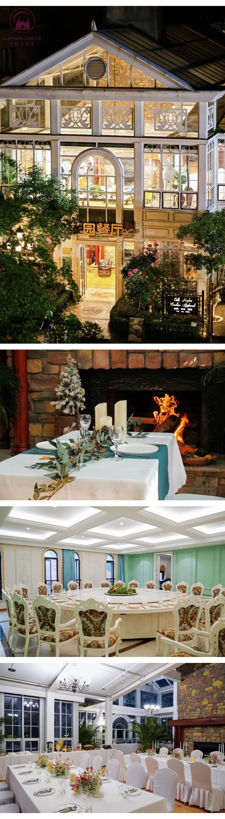 位于主城堡3楼露台的“景观型”餐厅,最大亮点是直面大岭山的开阔视野——晴天可览山峦叠翠,暮色中能赏落日余晖,将自然景致与用餐体验深度融合。