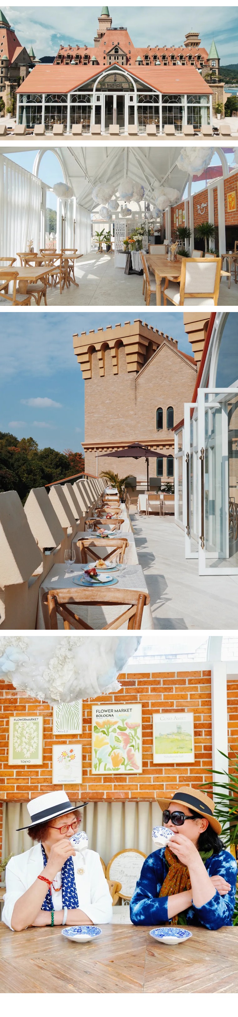 露台区域通风开阔,室内则是轻法式风格,可根据天气灵活选择用餐环境。除西餐和融合菜之外,餐厅还可提供下午茶服务,与同好边品茶边交流创作灵感,餐后还能在露台俯瞰城堡全景,放松身心。