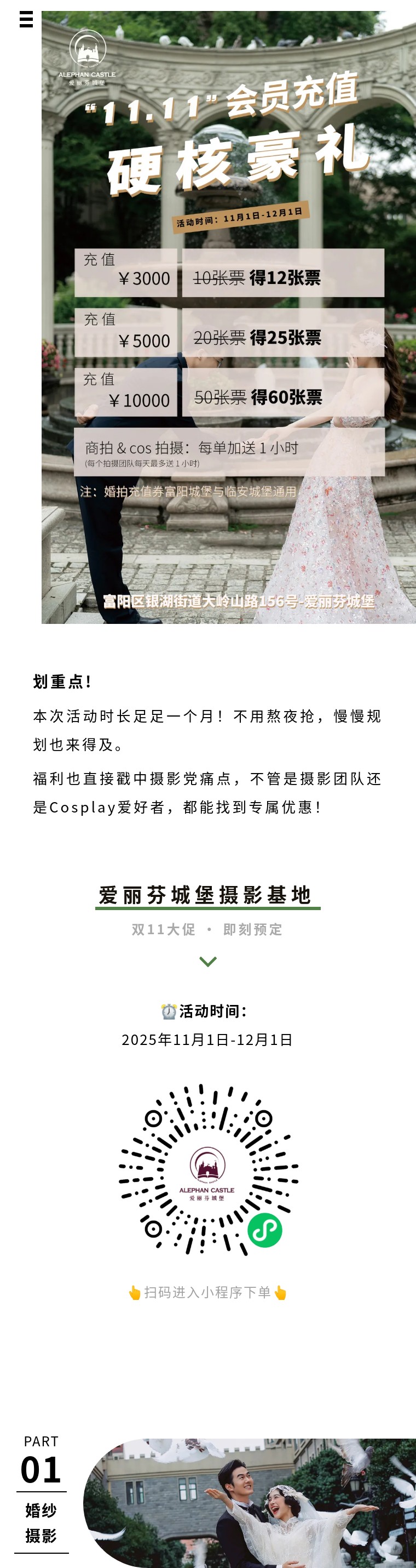 宝子们!双十一别只顾着囤护肤品、抢衣服啦!今年双十一,爱丽芬城堡摄影基地带着「拍得越多、省得越多」的福利来啦!