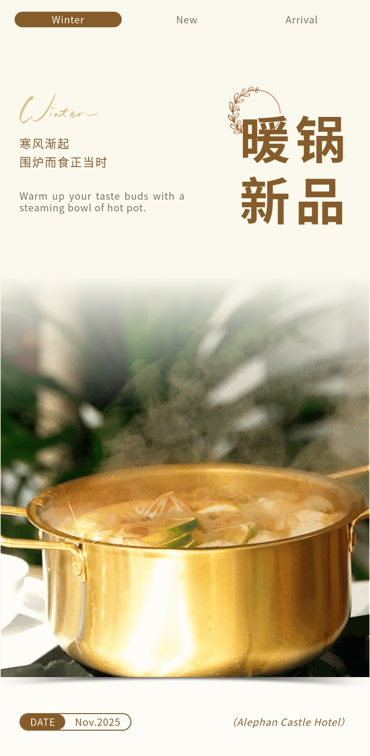本次全新推出2款特色暖锅套餐,从滋补养生到热辣过瘾,满足你的所有期待。