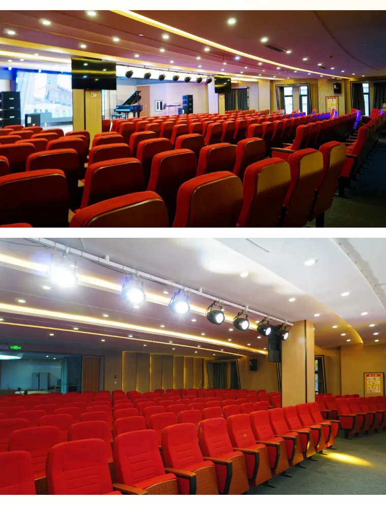 面积约300㎡,可容纳200余人,配备高清LED屏与专业音响设备,舞台空间充足,灯光架设点位齐全,座椅也选用了剧院级的,观看体验十分不错。