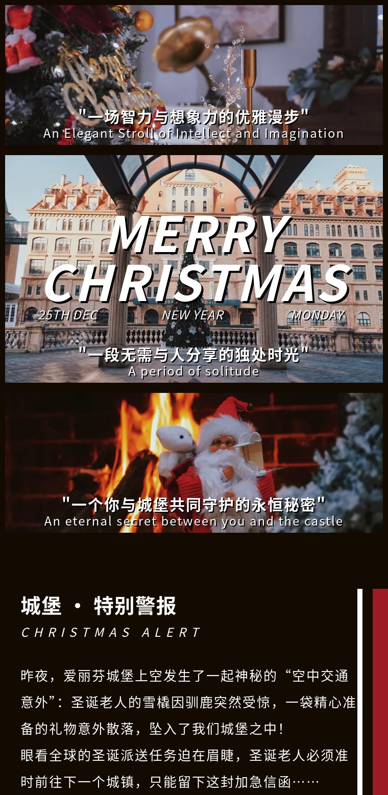 📸寻礼路上不孤单:城堡各处已挂满圣诞花环、圣诞树和麋鹿装饰,寻礼途中随手就能拍出圣诞大片,单人玩也能收获满满的仪式感。