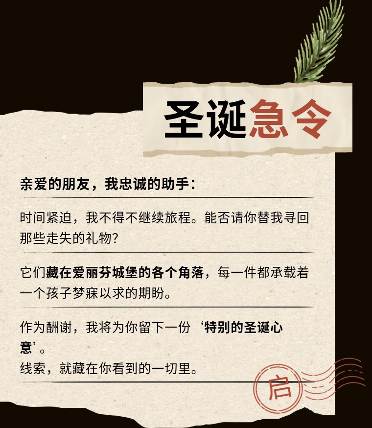 🎁收获独家圣诞馈赠:成功找回所有遗失礼物,你将获得圣诞老人承诺的“特别心意”——一份只赠予功臣的神秘礼物。